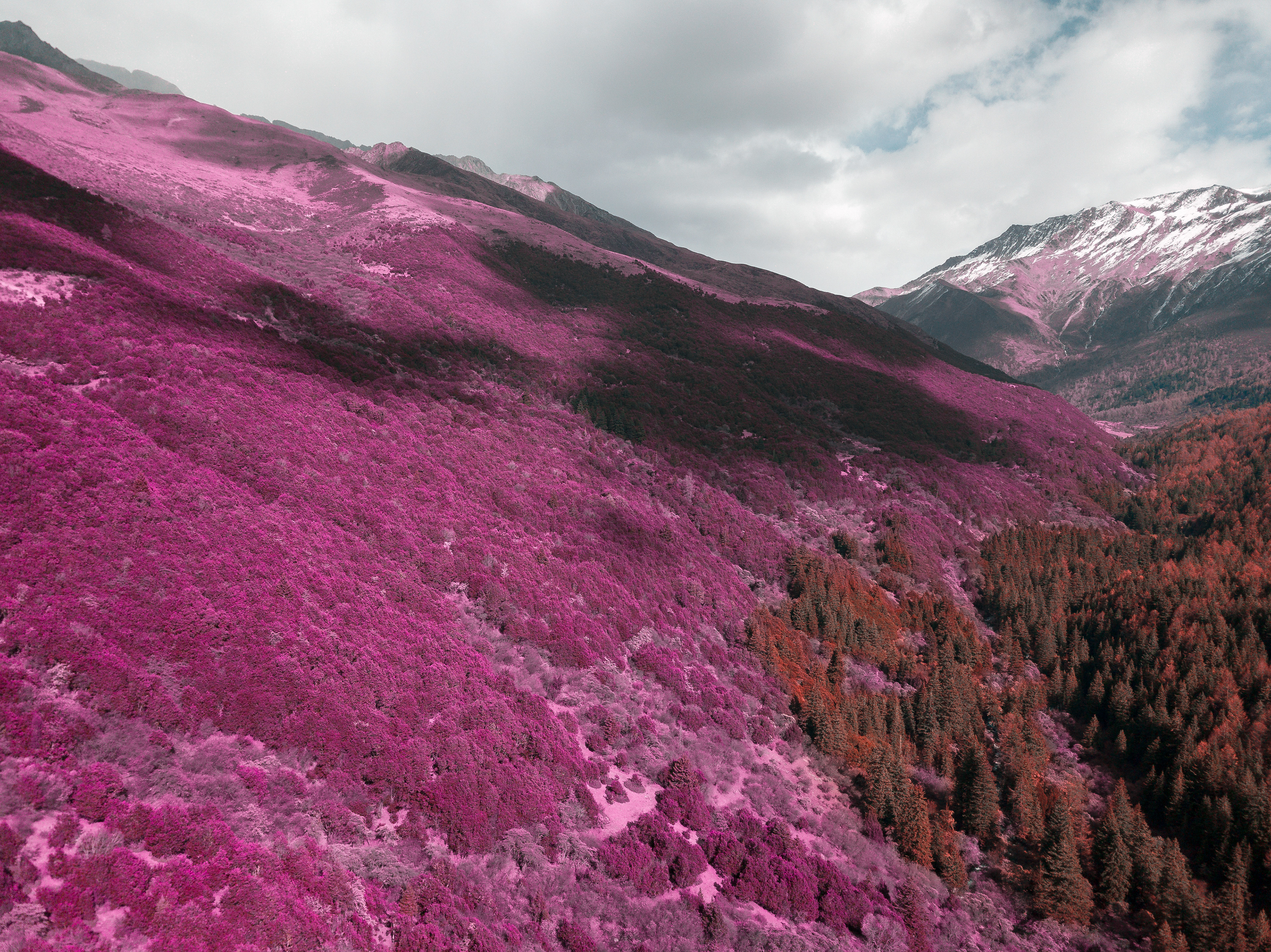 Infrared photography is a new trend that prompted I to capture the Chinese Mountains in their most beautiful form. They look like another planet where everything is pink and mysterious.