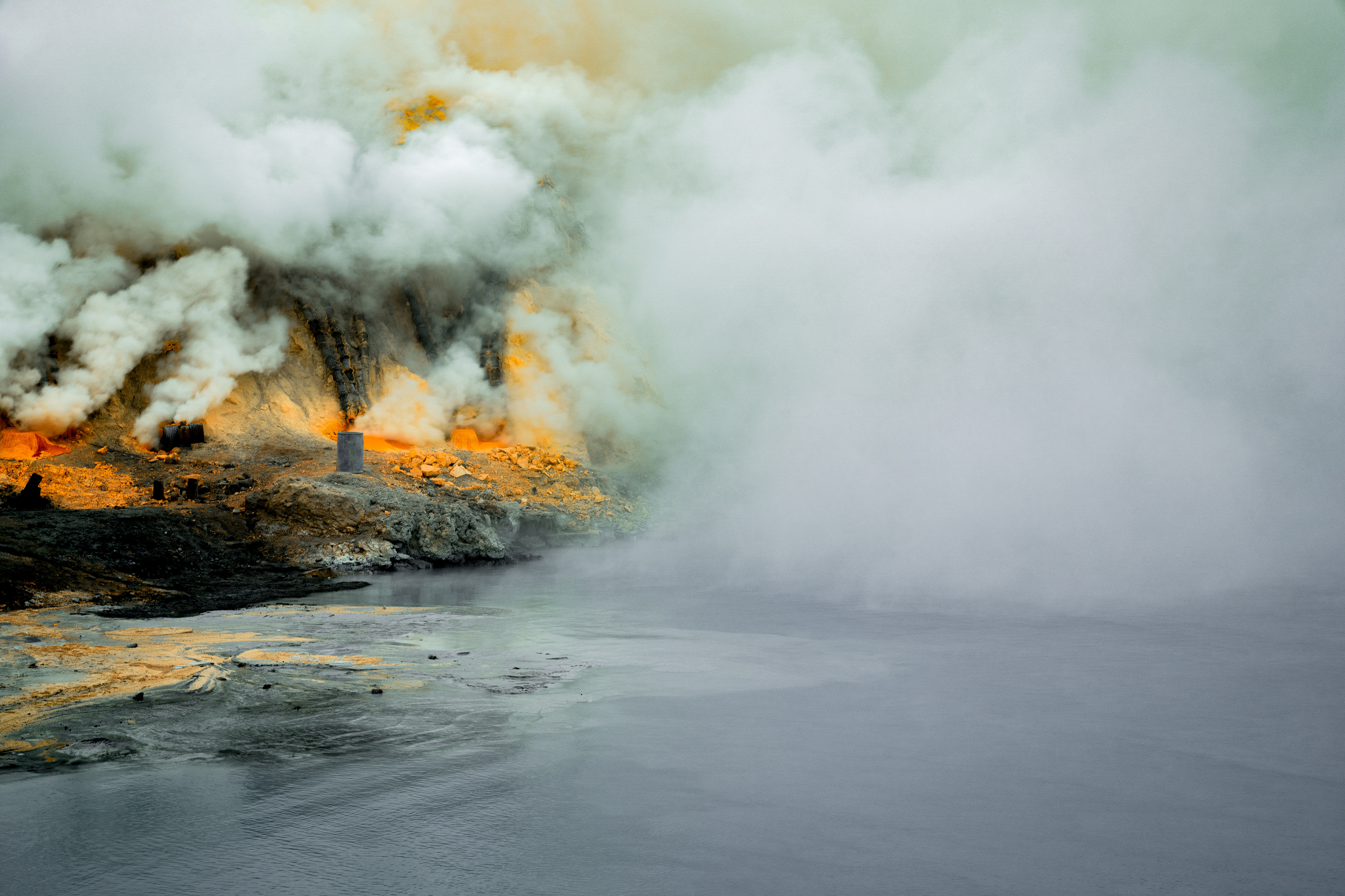 With a diameter exceeding 1 kilometer and a depth of approximately 300 meters, the Ijen volcano crater has formed the Ijen Volcano Lake due to the presence of abundant sulfur salts and volcanic magma activity at the bottom. The lakebed is rich in sulfur deposits. Every year, local residents and workers climb the volcano and then collect sulfur from the lakebed. This is a strenuous and hazardous occupation, as workers labor in an environment saturated with toxic gases, traversing the steep slopes. The sulfur mined by them is primarily used in the production of fertilizers and industrial products such as chemicals.